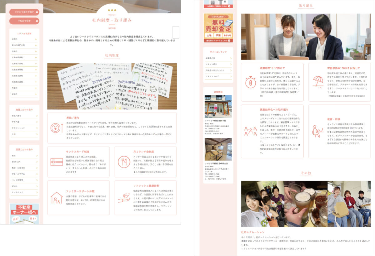 「このはな不動産」様の社内制度・取り組みページ制作実績