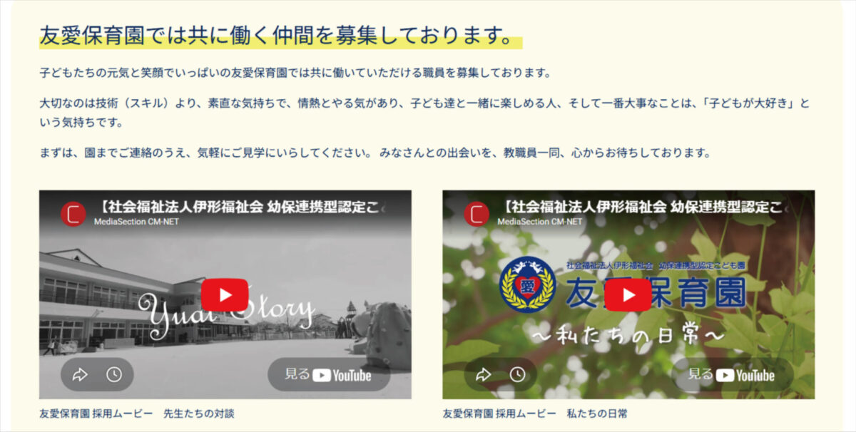 「友愛保育園」様の採用ムービー制作実績