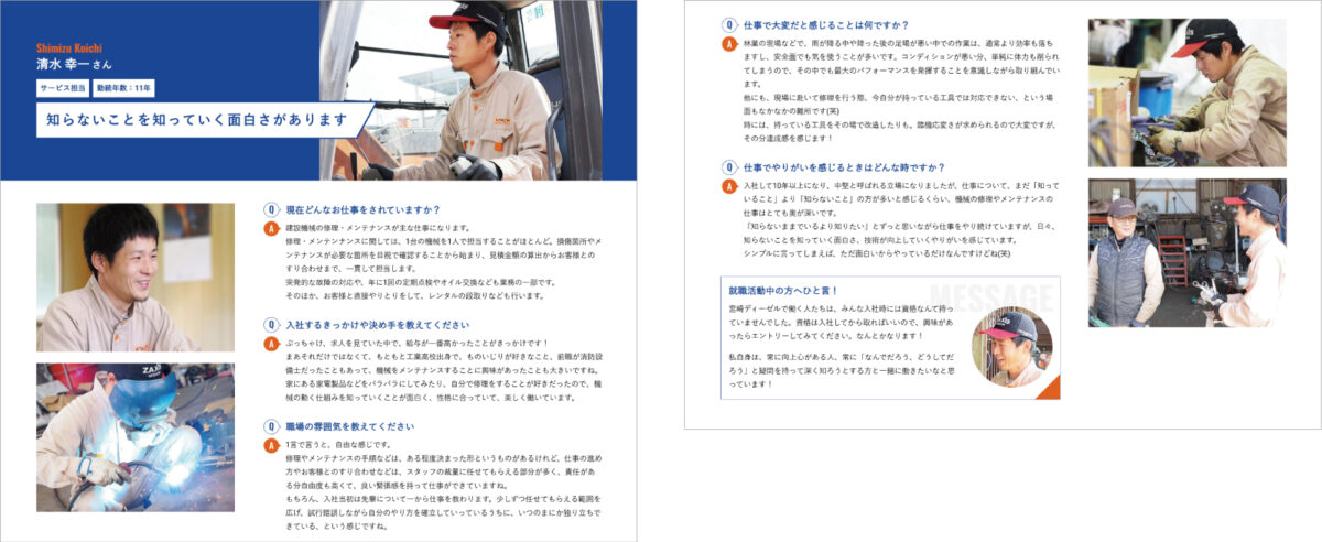 「宮崎ディーゼル株式会社」様の先輩社員の声ページ制作実績