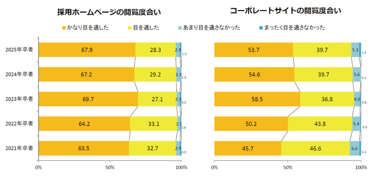 近年の学生向け調査でも、就職活動において採用ホームページをチェックする人が増えていることがわかっています。